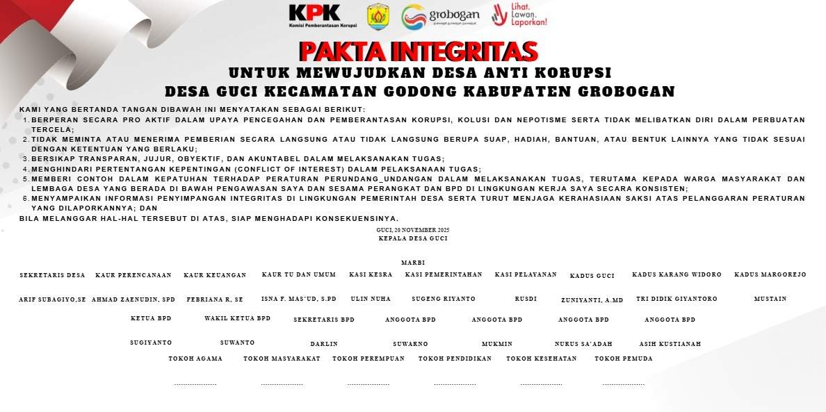 10 Januari 2026 Surat Pernyataan Tidak Ada Kasus Korupsi 3 Tahun Terakhir       31 Agustus 2025 JALAN SEHAT BARENG WARGA DESA GUCI 2025