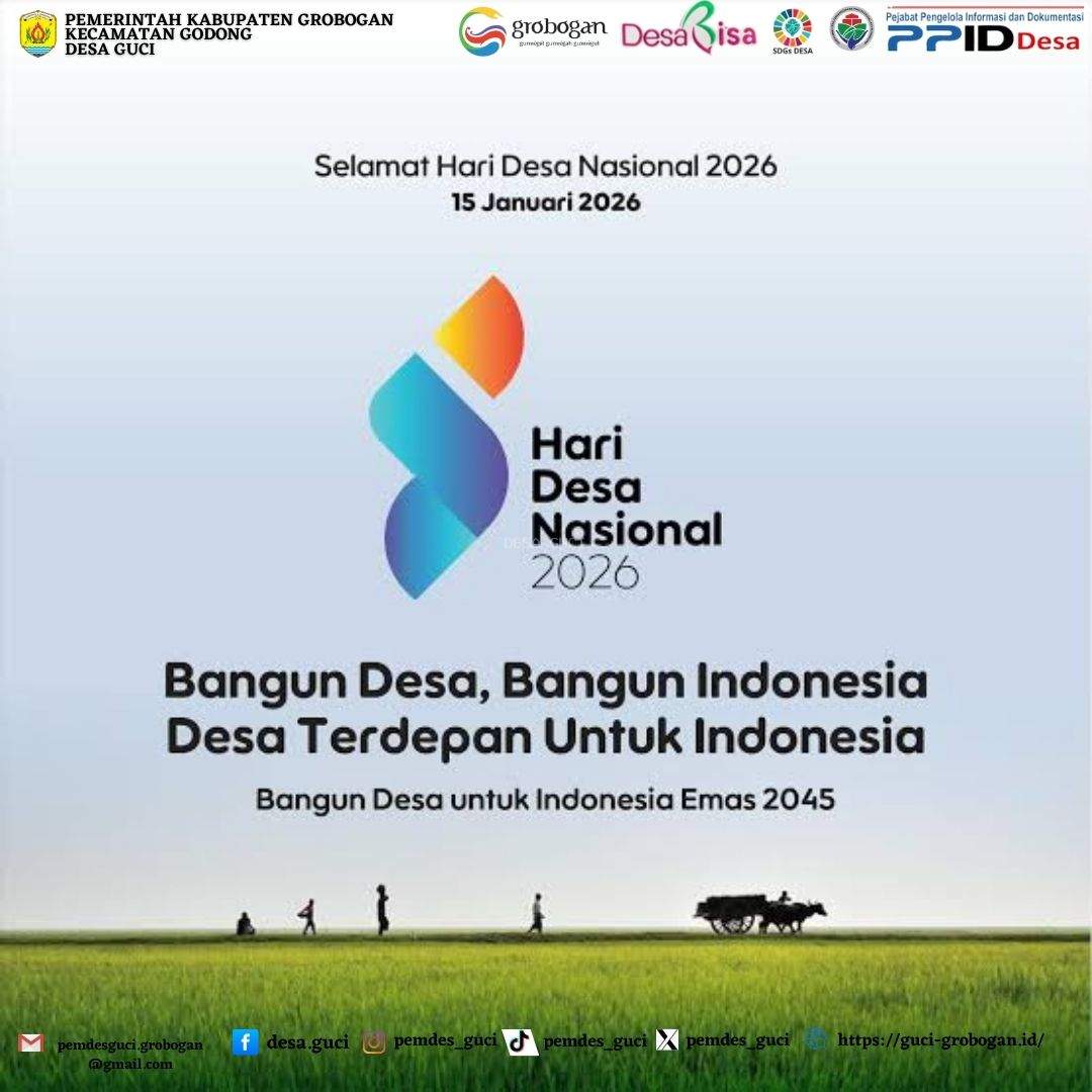 05 Februari 2026 Sewa Lelang Tanah Kas Desa Guci 2026 dilaksanakan Kamis Kliwon, 12 Februari 2026       05 Februari 2026 Pembayaran PBB-P2 Serentak 2026 Desa Guci dilaksanakan Jum'at Legi 13 Februari 2026       10 Januari 2026 Surat Pernyataan Tidak Ada Kasus Korupsi 3 Tahun Terakhir       31 Agustus 2025 JALAN SEHAT BARENG WARGA DESA GUCI 2025
